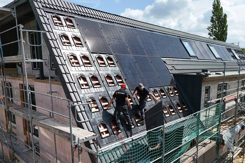 Bei der Indach-Montage ersetzen die PV-Module Teile der Dacheindeckung. Sie werden direkt in die Dachfläche integriert und übernehmen zusätzlich die Funktion der Dachziegel. Diese Variante wird immer häufiger gewählt, wenn gestalterische oder wirtschaftliche Aspekte eine wichtige Rolle spielen.